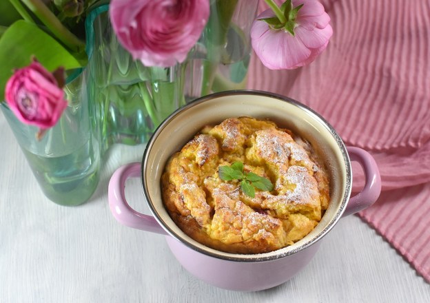 In der Hauptsaison gab und gibt es bei uns nahezu jede Woche einen Kirschauflauf. Wenn die Kirschen richtig reif sind, spare ich allerdings beim Zucker rund die Hälfte ein. Am liebsten backe ich ihn in meinem