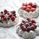 Baisertuffs, Beerenbaiserchen, Meringue & eine Pavlova - Dass ich diese luftig leichten, zuckersüßen Baiserchen liebe, ist kein Geheimnis. Als Kind habe ich bereits die Windringerl der Schokolade am Weihnachtsbaum vorgezogen. Die rosafarbenen hatten es mir besonders angetan.Und immer, wenn bei einem Rezept Eiweiß übrig bleibt, verarbeite ich es zu Windbäckerei – auch Baiser oder Meringue genannt. Eine himmlische Basis für weitere Desserts […]