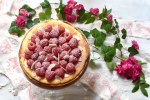 Rosen-Panna-Cotta-Tarte - Rosenblüten verleihen dem transparenten Spiegel der Rosen-Panna-Cotta-Tarte einen zarten, blumigen Duft. Ein Stück vom süßen, kleinen Törtchen und dazu ein Gläschen Rosé-Sekt mit Rosenblüten – sogleich haben meine Gäste ein Lächeln im Gesicht.Der dünne Tarteboden aus Mandelmürbteig, gefüllt mit einer Schicht cremiger Panna cotta mit Joghurt und Rosenwasser schmeckt gut gekühlt am besten. Ein besonderes […]