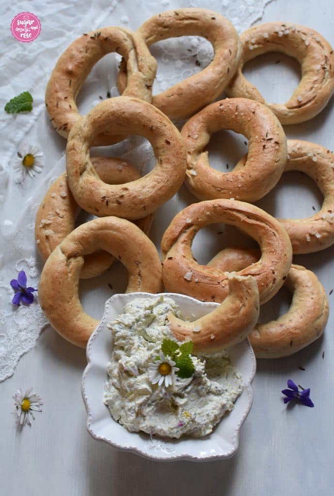 Teig in 5 Streifen schneiden und aufrollen. Die Schnecken in eine mit Backtrennpapier ausgelegte Form setzen und im – nicht vorgeheizten – Rohr bei 180 °C Ober-/Unterhitze oder 160 °C Umluft 25 Minuten goldbraun backen.
