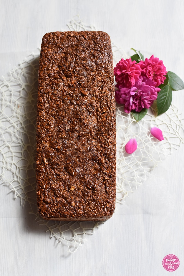 Der Kuchen sollte möglichst frisch gegessen bzw. in Folie gewickelt werden, da Speisen mit Kichererbsenmehl schneller austrocknen.