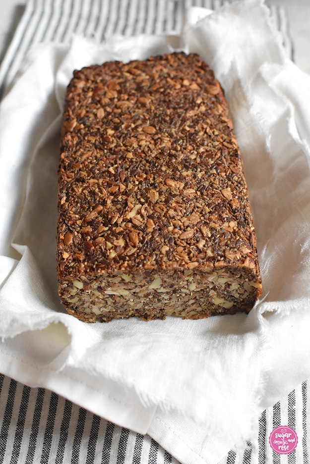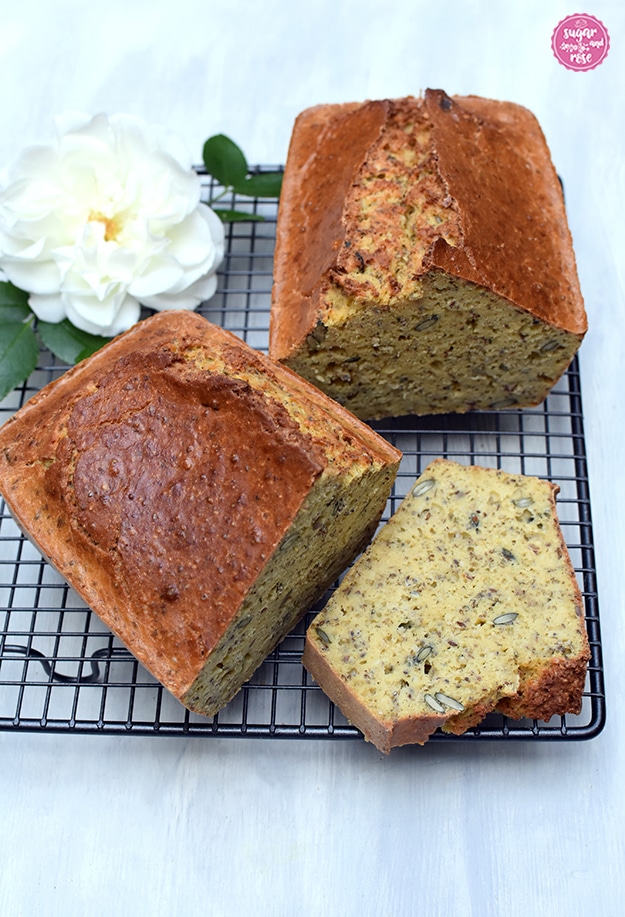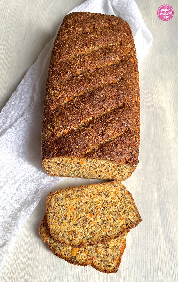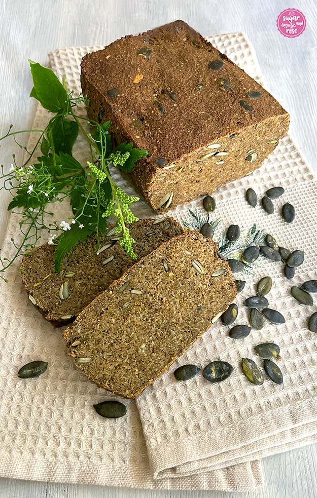 Eiweiß- und ballaststoffreiches Brot mit natürlichen Zutaten ist schnell und einfach zuzubereiten. Alle Zutaten vermischen und ab in den Ofen. Etwa 50–60 Minuten backen und fertig!