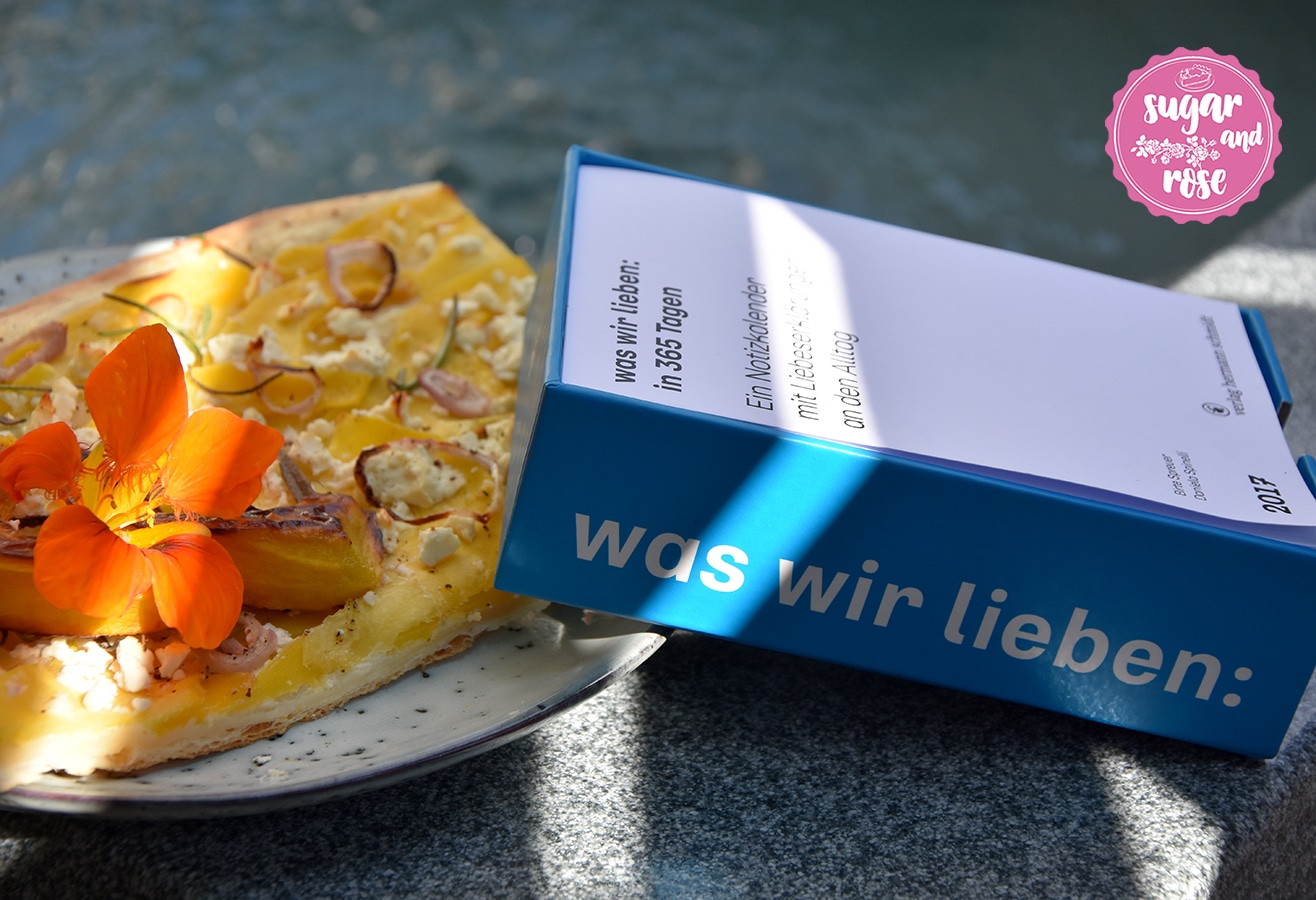 Da musste ich gleich nachschlagen, was an meinem Geburtstag 2017 steht: „’nen Scheissdreck tun“ – das wird ja immer besser. Also habe ich mich mit dem frischen Kürbis-Feta-Flammkuchen in den Garten gesetzt, ihn mit den Fingern verspeist und danach genau das getan, was er mir – eigentlich erst für nächsten August – angeboten hat: Nix. Gar nix. Nur in der Sonne relaxt.