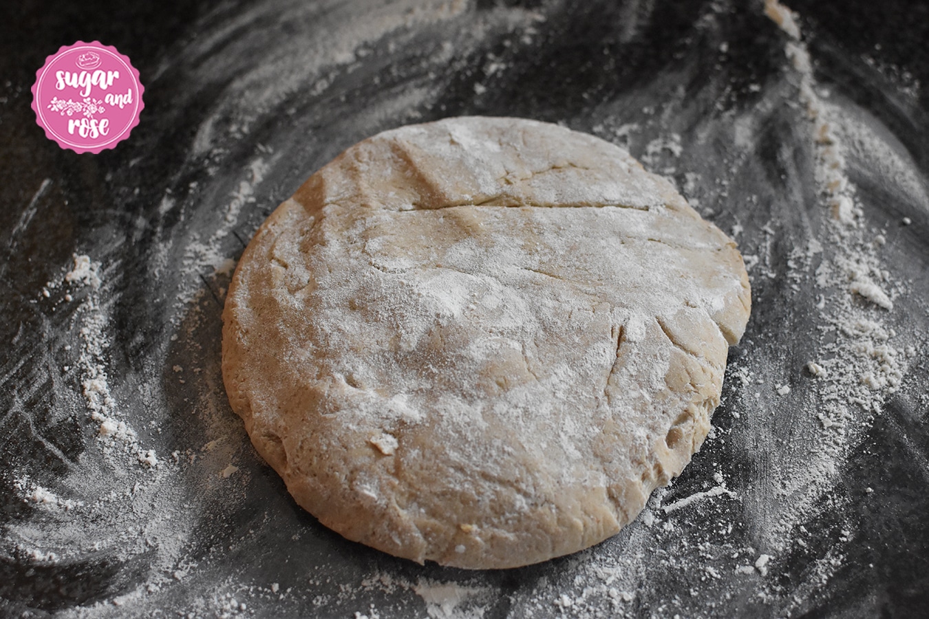 Ich habe als Füllung für meine Crostata eine Rosen-Frangipane kreiert, ursprünglich eine Butter-Zucker-Ei-Creme mit Mandelmehl und Mandelaroma, die ich mit Rosenöl und Rosenblütenblättern aromatisiert habe.
