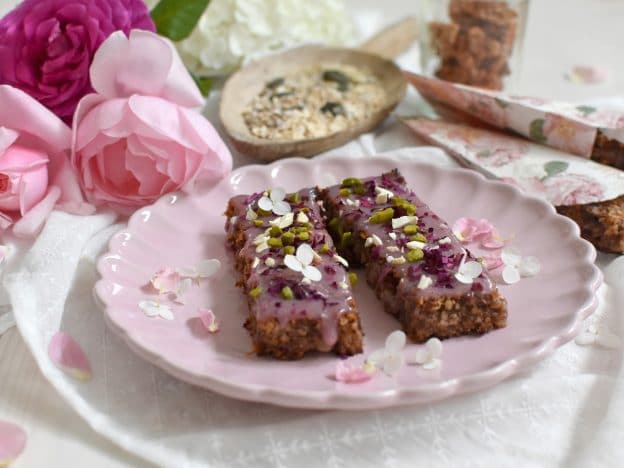 Diese Energiekugeln sind nicht nur der Farbe wegen – rosa, na klar – meine absoluten Lieblingskugeln, sondern weil ich Datteln als Snack ohnehin liebe. Die Datteln sollten sehr frisch und nicht zu trocken sein. Die gefriergetrockneten Himbeeren verleihen den Kugeln einen herrlich fruchtigen Geschmack.