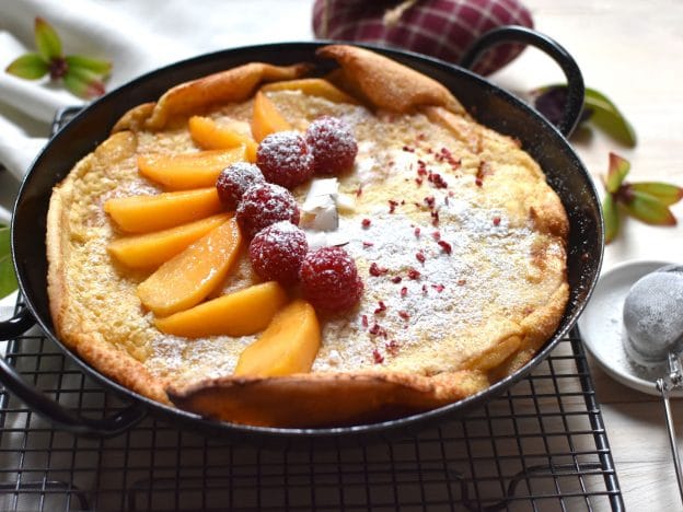 Mittlerweile haben sie auch in unseren Küchen Einzug gefunden – als Ofenpfannkuchen. Oft mit Apfelscheiben serviert.