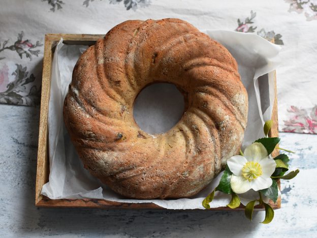 Brot muss nicht zwingend eine Laib- oder Striezelform haben. Zu den Feiertagen habe ich den Roggensauerteig auch schon mal in eine Tannenbaumform gedrückt. Warum also nicht auch in eine Gugelhupfform?