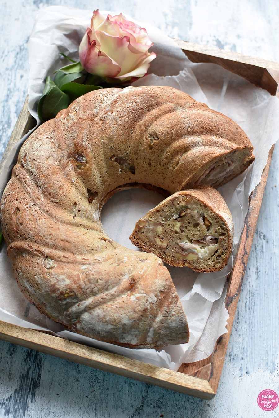 Nun bin ich kein großer Weißbrot-Fan. Mein selbst gebackenes Brot enthält zumindest einen Teil Vollkornmehl. Und meist auch Körner, Samen und Nüsse. Zum Dreikönigsbrunch kommt daher ein herzhaft gefüllter Brotgugelhupf auf den Tisch.
