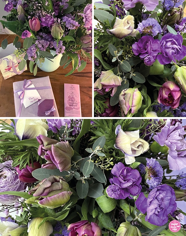 Die Valentinstagsblumen von letztem Jahr möchte ich euch unbedingt zeigen, damit ihr wisst, warum meine Vorfreude berechtigt ist: ein Traum von Frühlingsstrauß in Very Peri, der Pantone-Farbe des Jahres 2022.